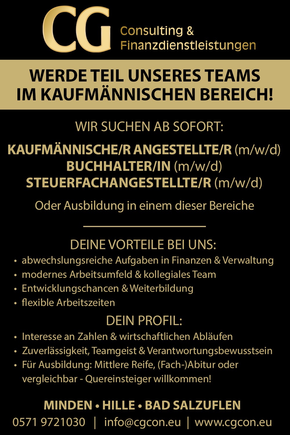 Gerne sind wir auch für Sie tätig. Rufen Sie uns an unter 0571 97 21 03 0 oder schreiben Sie uns eine E-Mail an: info@cg-consulting.info